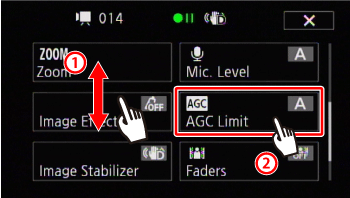 ], or drag your finger along the dial to set the AGC limit.The smaller the value, the less the gain limit. (You can record dark scenes as is.)