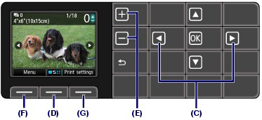 (1) Press the right Function button (G) to select Print settings, and confirm the page size, media type, print quality, etc.