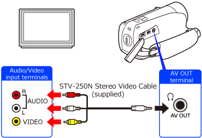 To play back movies in standard-definition, the camcorder can be connected with the supplied stereo cable.