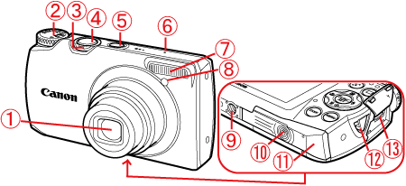 ![]() | Shutter Button | ![]() | Memory Card / Battery Cover |