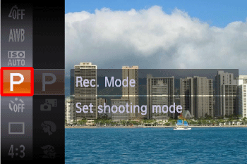 Operate the <directional buttons> up or down to select the [Rec. Mode]. (If no changes have been made so far, [Program AE] (