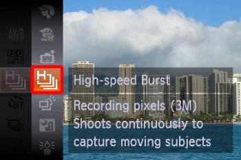 ) button.4. Operate the <directional buttons> up or down to select the [High-speed Burst] (