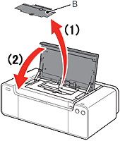 Open the Print Head Lock Lever (2) (E) fully until it stops.