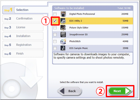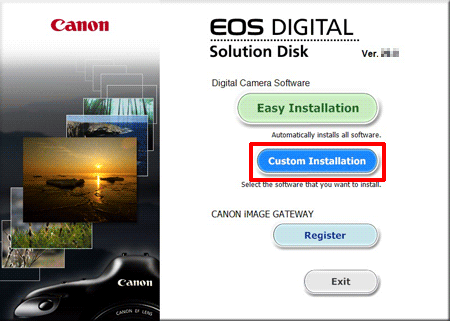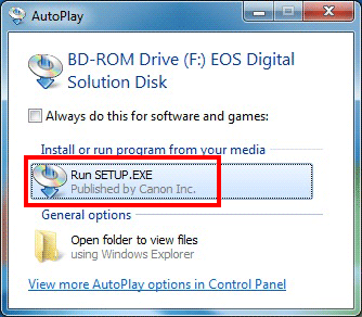 - If the CD-ROM is version (Ver.) 21 or earlier, the software is not compatible with Windows 7. Please download the euxxxen.exe (the "xxx" indicates the version number) updater from the Canon Web site, and then install the software by following the on-screen messages displayed. If the [User Account Control] screen is displayed, please follow the instructions displayed.