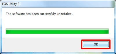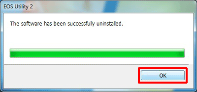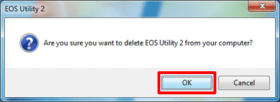 3. When the following dialog box appears, click [OK] to start uninstalling EOS Utility.
