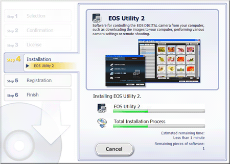 Go to the following Re-installing EOS Utility section to re-install the software.