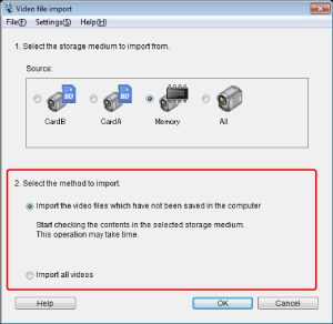 • Import all videos: Imports all files in the selected memory.