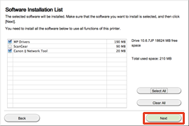 - When this printer has not been detected, the Check Printer Settings dialog box is displayed. In such a case, refer to [ The printer cannot be detected (the message that the printer could not be detected on the network is displayed) ].