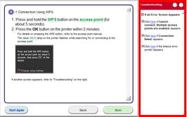 If an error message is displayed, see "Troubleshooting" at the right.