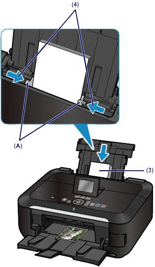 (4) Slide the paper guides (A) to align them with both sides of the paper stack.