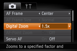 - Set the [Digital Zoom] to either [1.5x] or [2.0x]