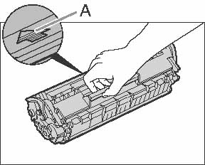 The arrow (A) on the toner cartridge should be facing away from you and pointing down.