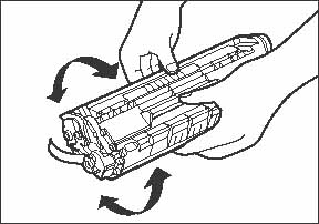 4. Gently rock the toner cartridge five or six times to distribute toner inside.