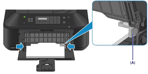 (4) Slide the right paper guide (A) to align the paper guides with both sides of the paper stack.