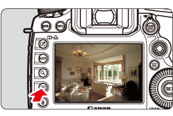 >(Playback) button. The last captured image or last image viewed will appear.