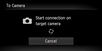 When the [Start connection on target camera] screen appears on both cameras, the registration will start.