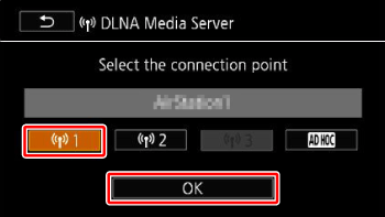 •If only one connection point has been set up, the wireless connection