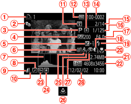 ![]() | Movies, High-speed burst, Print list | ![]() | Current image no. / Total no. of images |