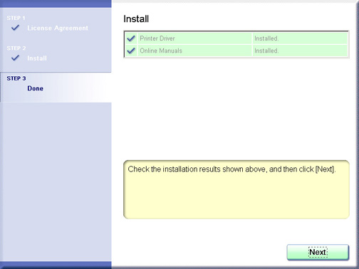 When you select [Easy Installation], Printer Driver and Online Manuals will be installed. If you do not want to install both items, select [Custom Installation], and select the item you want to install.