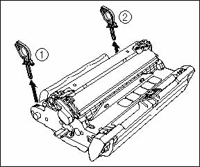 Remove the packing materials (1) and (2) by hooking your fingers into the tab and pulling them in the direction of the arrows.