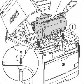 Position the triangular mark on the drum cartridge with the triangular mark on the machine and install the drum cartridge (1).