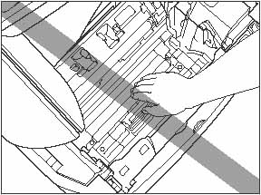 b. Do not touch the electrical contacts or gears in the cartridge cover, as this may result in an electric shock.