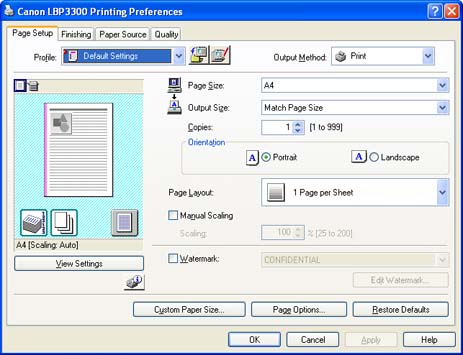 Displaying the [Document Properties] dialog box from the [Printers and Faxes] folder or the [Printers] folder (Windows 2000/XP/Server 2003)