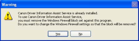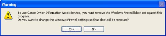 If you have installed Canon Driver Information Assist Service and are using an operating system equipped with Windows Firewall, when the following message box is displayed, click [Yes] or [No].