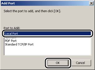- Select the printer port you want to add from [Add Port] dialog box -> click [OK].
