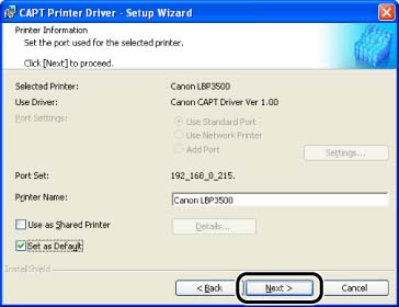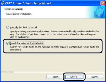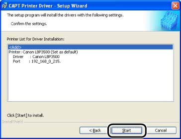 a. When installing the printer driver from [Add Printer Wizard] or by setting the port manually using the CD-ROM (CD-ROM Setup) supplied with the printer, be sure to set the IP address and install Canon CAPT Print Monitor before installing the printer driver.