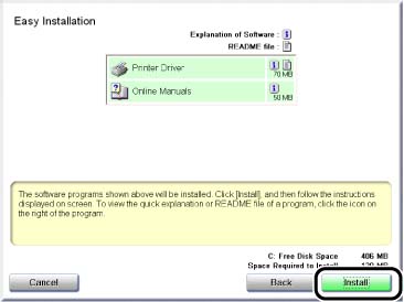 [Easy Installation] allows you to install the printer driver and the instruction manuals simultaneously. If you do not install the manuals, select [Custom Installation].