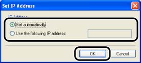 - Enter the IP address of the printer in the [Set IP Address] dialog box, then click [OK].