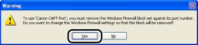 If you are using Windows XP Service Pack 2 or another operating system equipped with Windows Firewall, and the Windows Firewall is enabled, click [Yes] when the following screen is displayed.