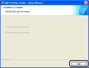 15. The screen that informs you of the completion of the printer driver installation is displayed. Click [Exit].