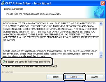5. Confirm the contents and select [I accept the terms in the license agreement], and then click [Next].