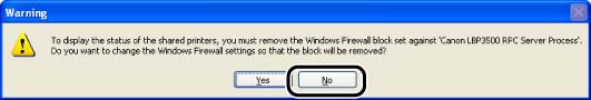 If you are using Windows XP Service Pack 2 or another operating system equipped with Windows Firewall, the following screen is displayed. Click [No].