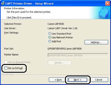 10. Select whether or not to use this printer as the default printer, then click [Next].
