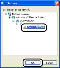 9. Select the icon for the shared printer in the print server, then click [OK].