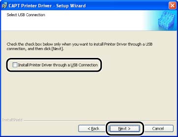 Do not select the [Install Printer Driver through a USB Connection] check box.