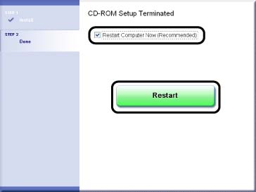 16. Select the [Restart Computer Now (Recommended)] check box, then click [Restart].