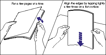 i. If you use Index Card size media that has been poorly cut, multiple sheets of that may be fed at once. In this case, fan the Index Card size media thoroughly, and then align the edges of the stack on a hard, flat surface.