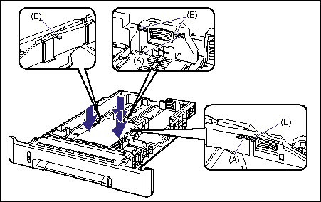 c. Refill the paper cassette after all the loaded paper runs out. If the cassette is refilled when paper still remains in the cassette, it may result in misfeeds.