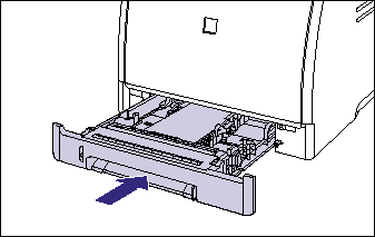 Push the paper cassette into the printer firmly until the front side of the paper cassette is flush with the front surface of the printer.