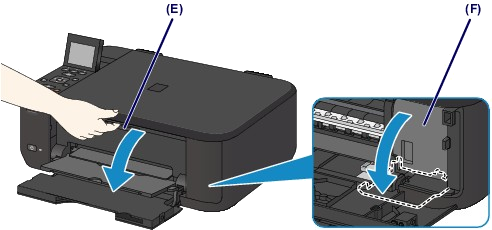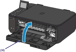 When the FINE cartridge holder moves to the replacement position, the head cover (F) OPENS AUTOMATICALLY.