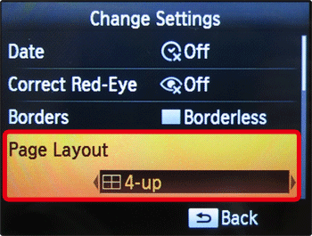 4. The following screen appears. Select the [Page Layout] settings on this screen. ([4-up] is selected here.)