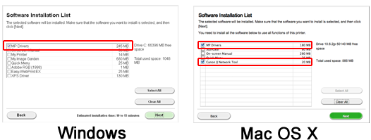 For Mac OS X, select [MP Drivers] and [Canon IJ Network Tool] and click [Next], then follow the instructions.