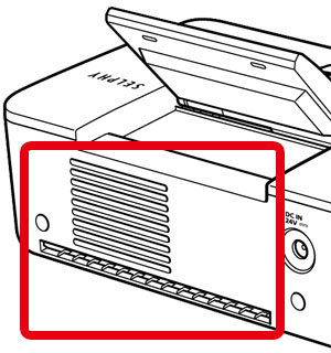 If dust comes in through the <Air Vents>, it will adhere to the [Ink sheet]. As a result, you will not be able to make clean prints. If dust gets on the [Ink sheet], use a blower brush or something similar to remove the dust without touching the [Ink sheet] with your hands.