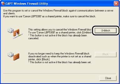 You cannot click [Unblock] if the firewall is already configured to unblock communication with client computers.