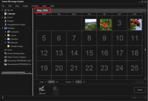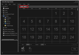 3. At the initial launch, My Image Garden displays the main window in the calendar view.