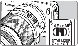 In the menu, set [Focus mode]* to [AF], or set the focus mode switch on the lens to <AF>.